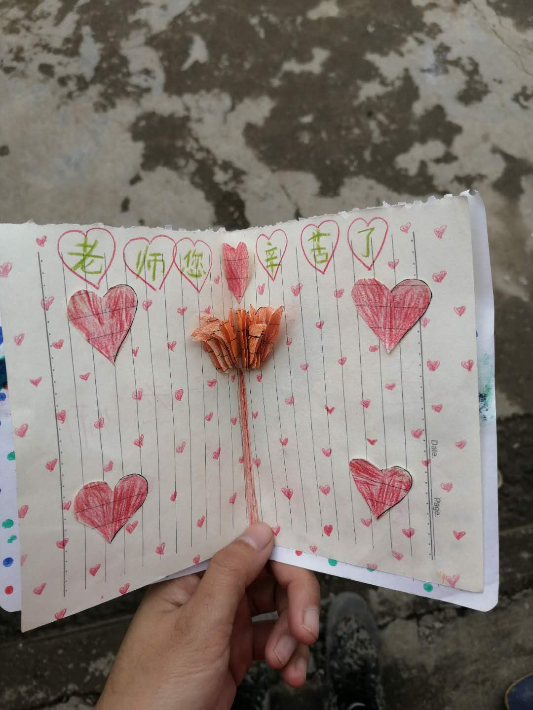 日子一天天过去,忙碌而充实。翁婷婷原本只计划在这个乡村小学呆一个学期,但她开玩笑说,因为觉得“收拾行李”太麻烦,就延长到两个学期,甚至还想呆第三个学期。其实在山里,她并没有什么太多的行李,但跟孩子们一起相处的“无压力”生活,让婷婷非常享受。有时候,孩子们将上学路上看到的美丽花草摘了送给她,或者在美术课上用亲手制作的贺卡表达对她的爱。一点一滴的惊喜与温暖,让婷婷不舍。