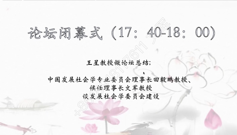 闭幕式上,王星教授将此次论坛总结为“跨学科、跨领域、跨年龄”的三跨论坛,围绕多种面向的“跨”学术交流,对我们思考和探讨多元面向的社会发展、尤其是高质量的社会发展模式来说,具有非常重要的价值。中国发展社会学专业委员会理事长田毅鹏教授对论坛的顺利召开表示了高度的赞扬,并进一步阐述了发展社会学的时代使命和时代价值。候任理事长文军教授就发展社会学专业委员会的学术建设谈了想法,倡议未来以更加多元的方式促进发展社会学的线上与线下交流,为发展社会学的研究打造更多平台,推动发展社会学理论与实践研究的进一步深化。