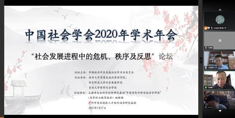 2020年9月27日,中国社会学会2020年学术年会“社会发展进程中的危机、秩序及反思” 论坛以网络会议的形式顺利召开。论坛由中国社会学会发展社会学专业委员会主办,南开大学周恩来政府管理学院、禁漫天堂