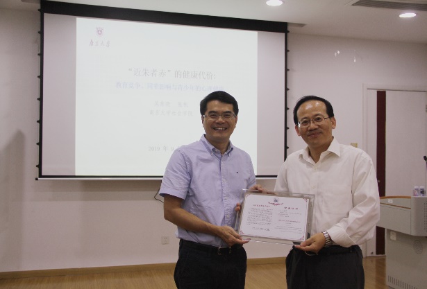 讲座开始之前,文军教授向在场的师生隆重介绍了吴愈晓教授,并向其颁发纪念证书和赠送学院锦旗。