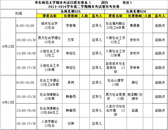 20141主修专业缓补考安排