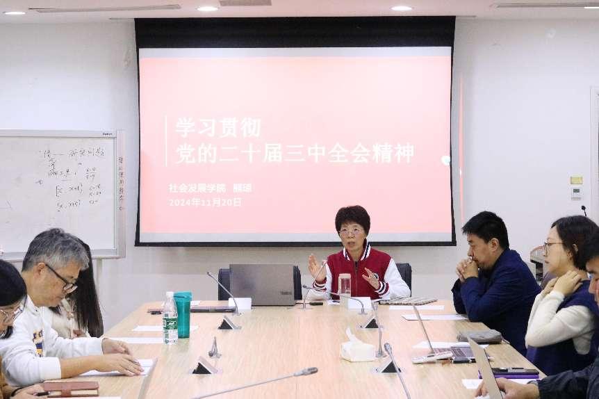 会上,学院党委书记熊琼传达了学校书记例会的精神,并带领与会人员深入学习了党的二十届三中全会精神。熊琼指出,当前和今后一个时期是以中国式现代化全面推进强国建设、民族复兴伟业的关键时期,必须自觉把改革摆在更加突出位置,紧紧围绕推进中国式现代化进一步深化改革。全体党员要深刻领会全会精神,学透精神,切实把思想和行动统一到党中央决策部署上来。领会中央社会工作会议精神,抓住机遇,不断创新发展,助力社会治理现代化。当前,学院正在谋划社会学学科转型发展方向与方案,我们应精准把握形势,主动担当,充分调动和发挥师生党员先锋模范作用,推动学院事业发展向更高台阶跃升。同时,继续发挥学院优势,持续深化美好社区先锋行动,拓展中东西部党建帮扶圈。